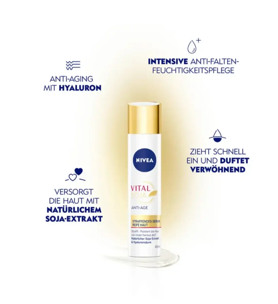 Revitalize your skin with NIVEA Vital Soy Anti-Aging Face Serum 40 ml, the Anti-Aging Face Serum.