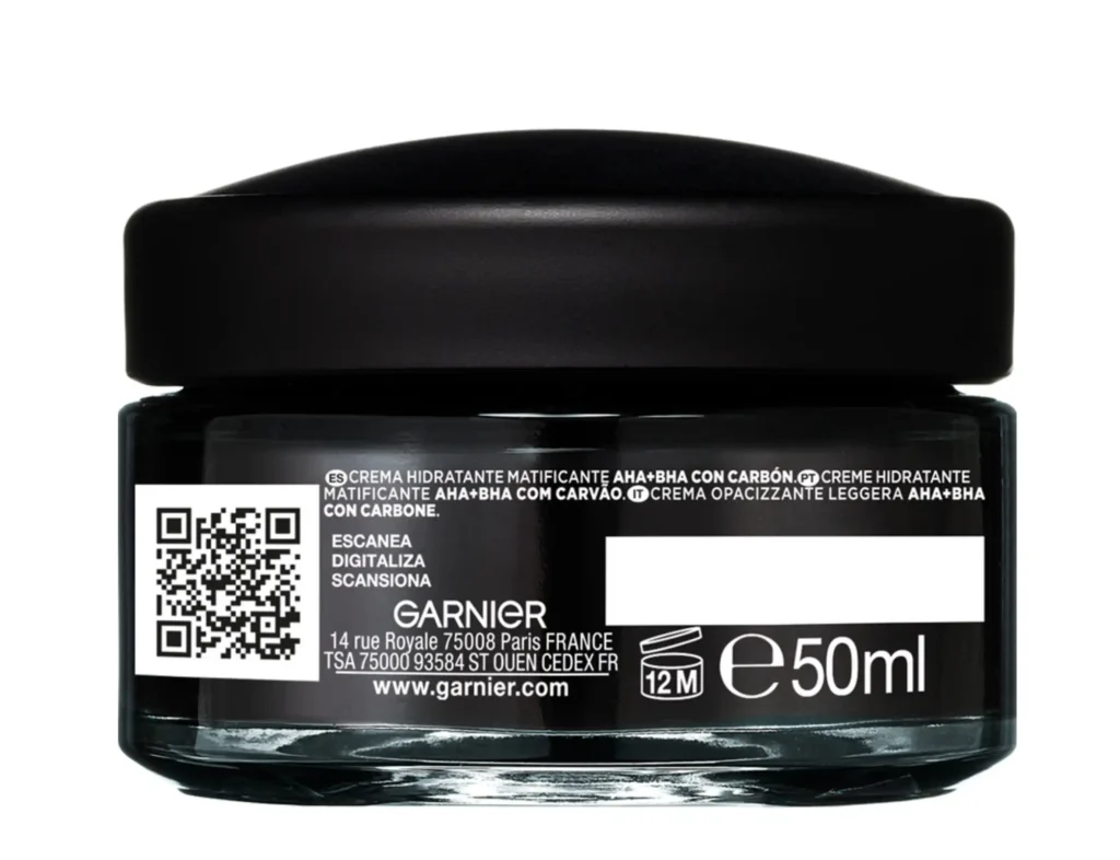 Garnier Luchtbevochtiger AHA+BHA met Houtskool – Licht Matterende Crème 50 ml. Producttype: