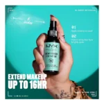 NYX Professional Makeup Spray Fixateur vous aide à garder votre look frais. De plus, l’effet dure pendant des heures.